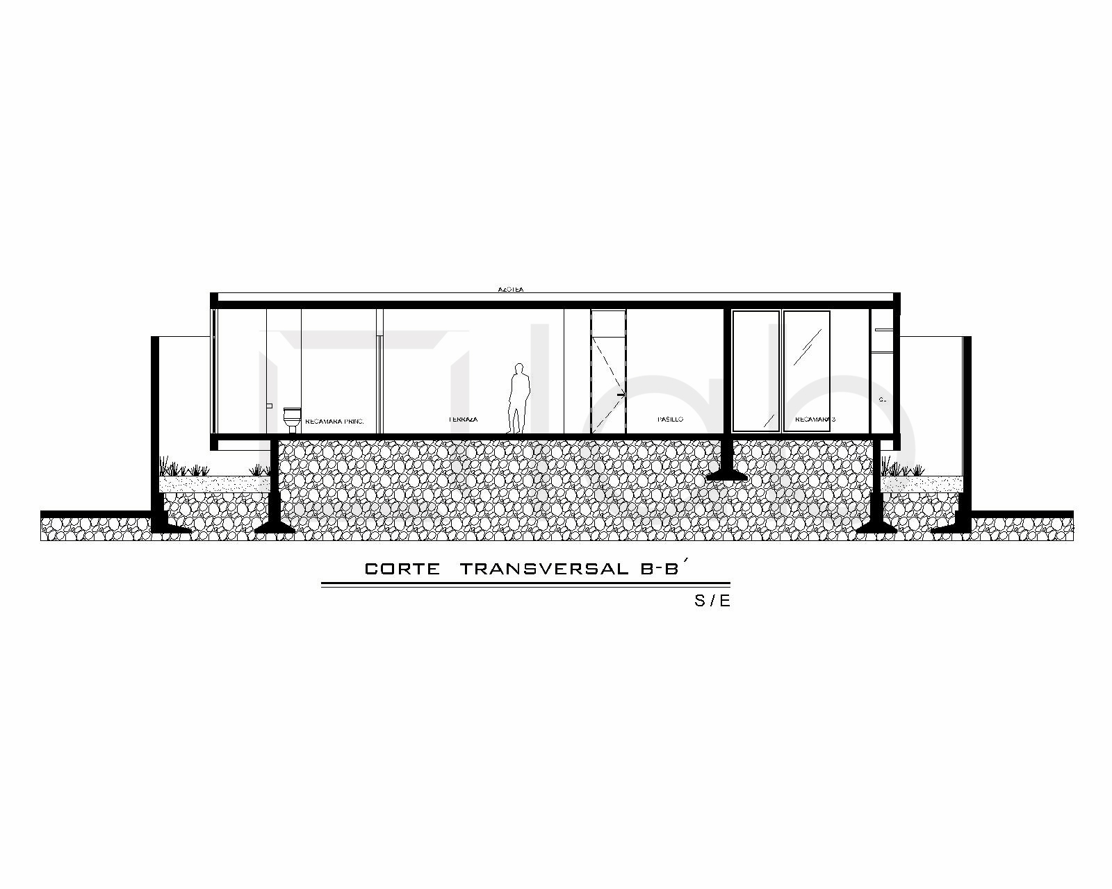 El proyecto se organiza en dos volúmenes principales dispuestos de manera perpendicular en madera, separando con claridad las áreas públicas de las privadas. Los muros en tono blanco ostión refuerzan la sobriedad del conjunto, mientras que un recubrimiento de mármol verde envuelve el área de servicio otorgándole carácter y privacidad.
