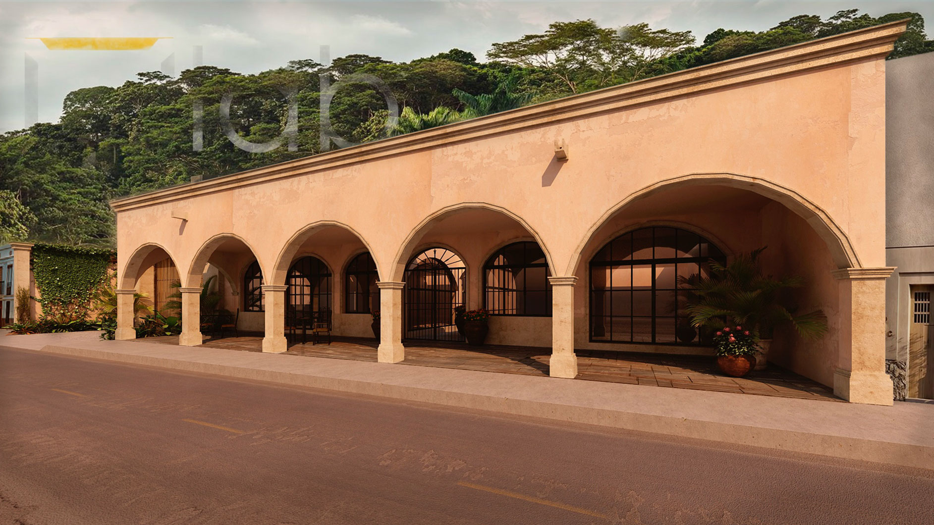 Este lenguaje arquitectónico crea espacios atemporales, donde la luz, la sombra y los materiales —cantera, madera, hierro, barro y chukum— se entrelazan en una sinfonía cálida que honra la historia y la tierra que la inspira.
