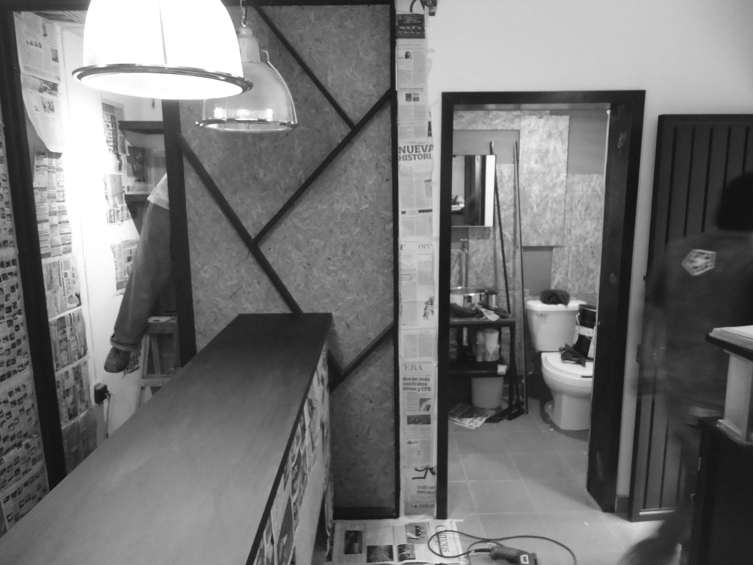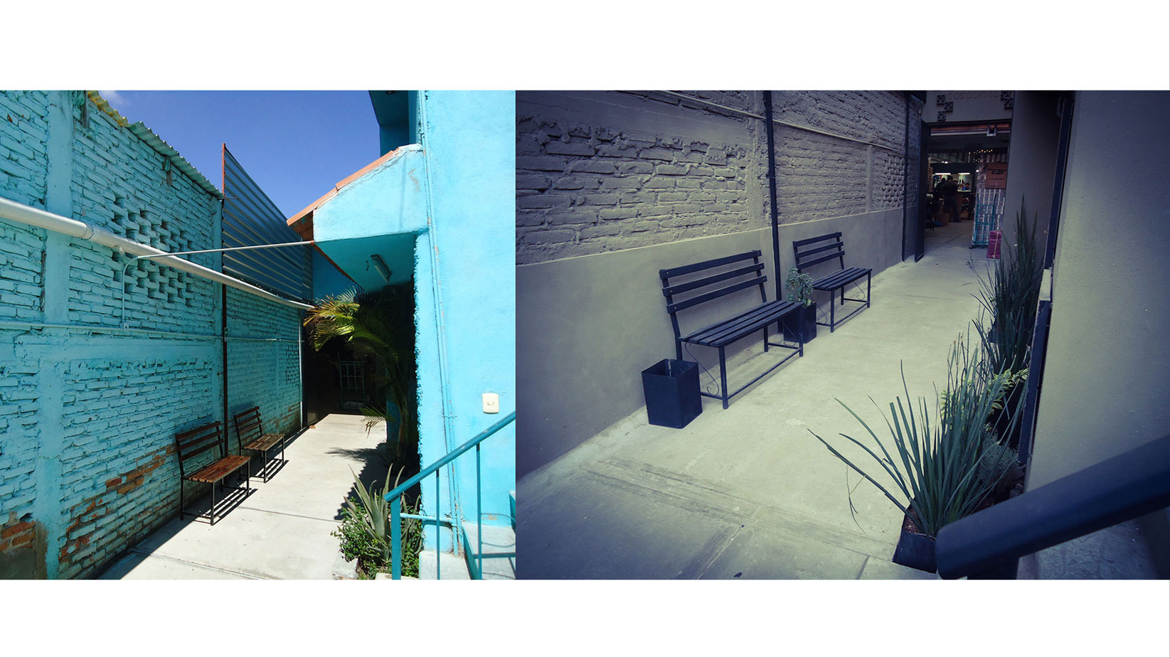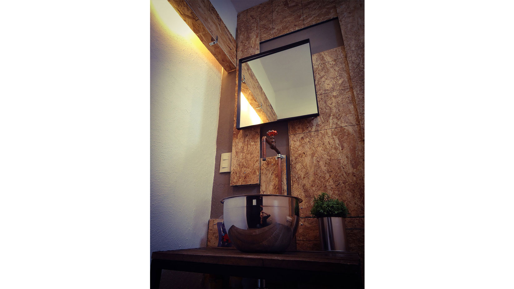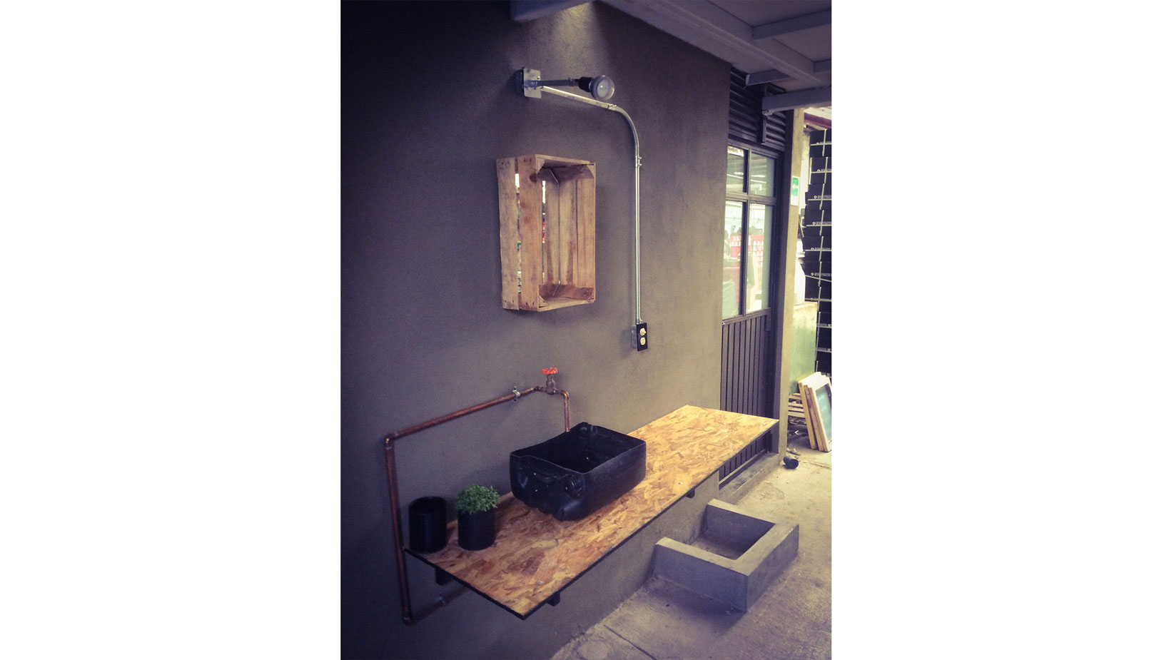 La mayor parte del presupuesto se destinó a rehabilitar instalaciones hidráulicas, sanitarias y áreas operativas, lo que llevó a buscar soluciones ingeniosas para la ambientación estética. La respuesta estuvo en el propio lugar: reutilizar materiales de la fábrica —tarimas de madera, botes de lámina, garrafones plásticos, puertas, tabique, metal y mobiliario existente— otorgando nueva vida a lo que parecía desecho.