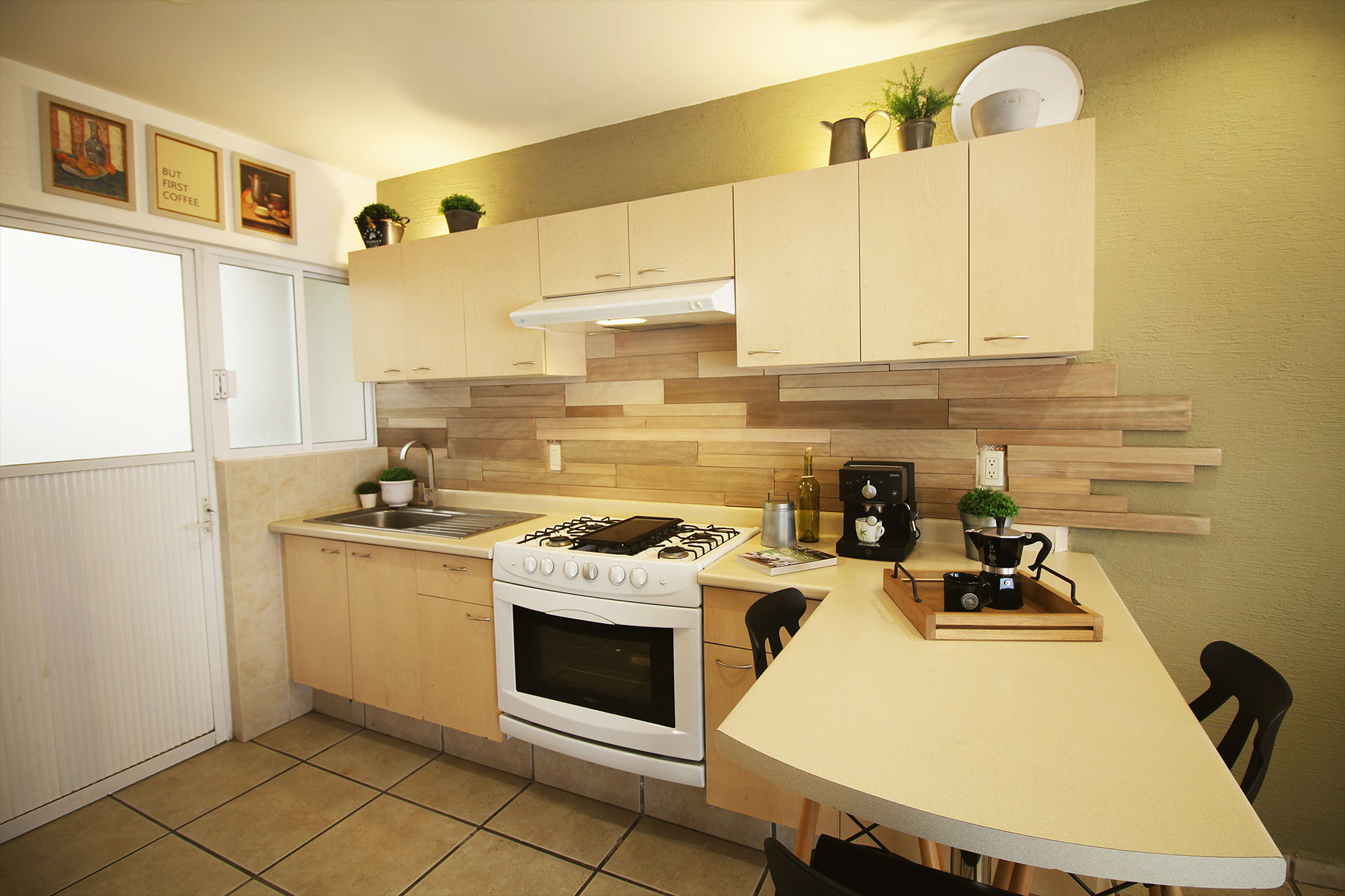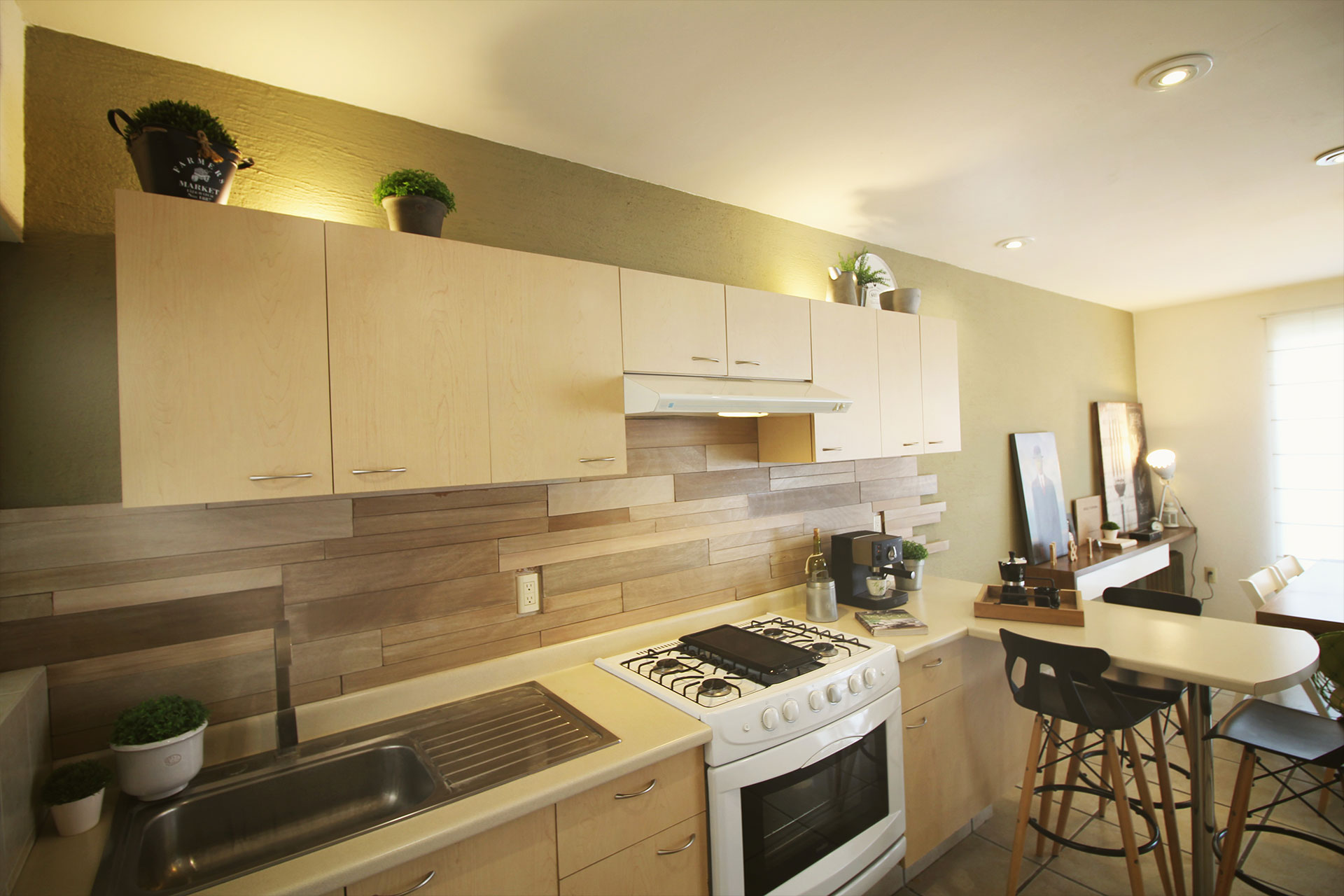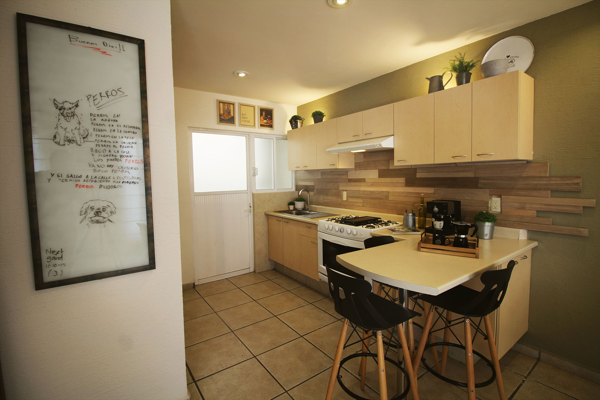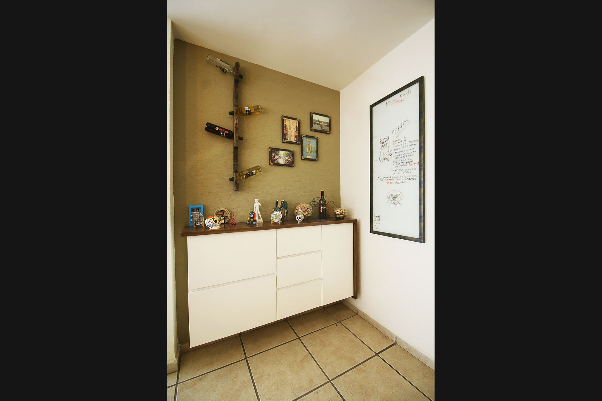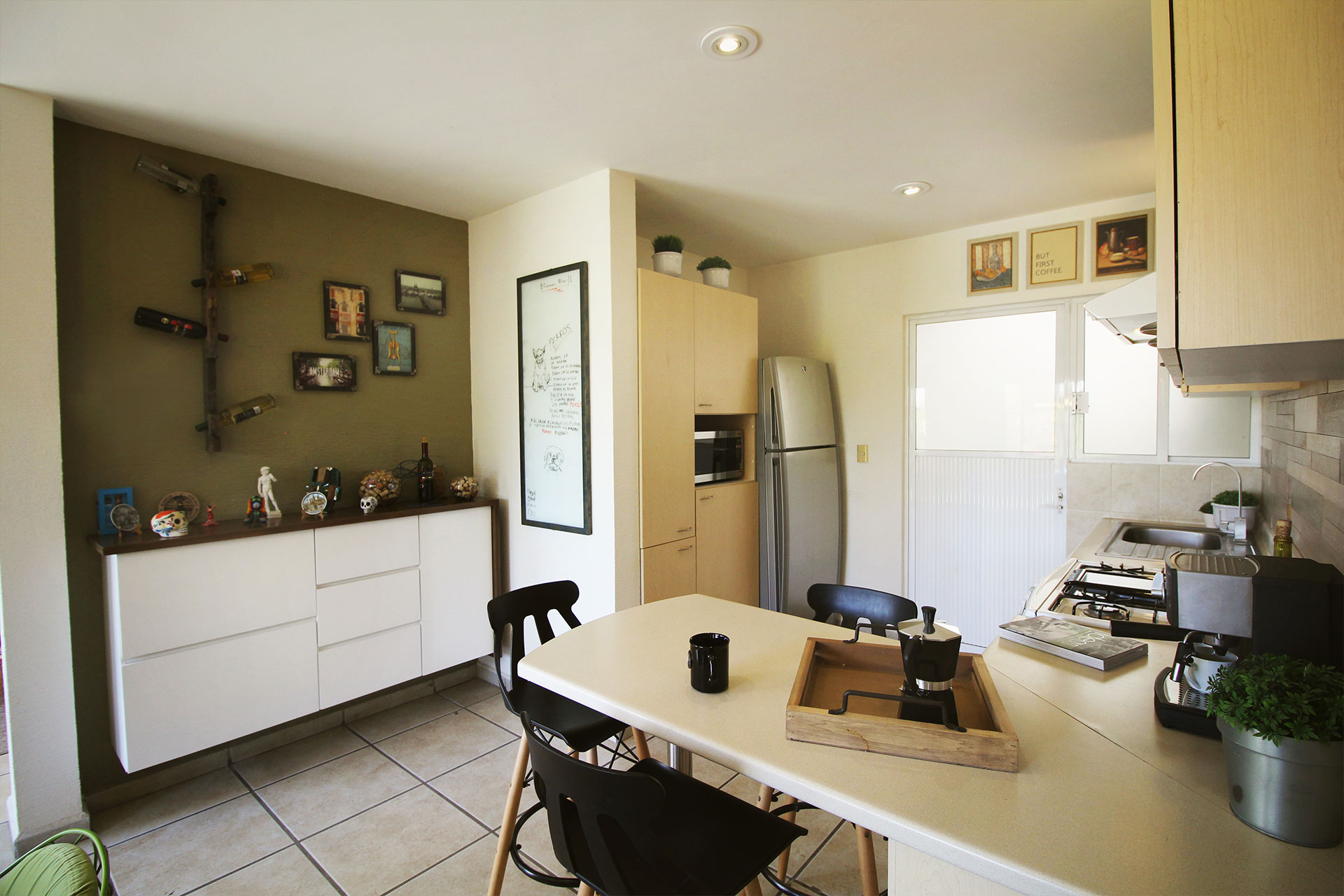 Con un pensamiento alternativo el diseño de los espacios para la casa IM a petición de los clientes se debía dar uso a materiales existentes y reflejar conciencia en el reusó de elementos en la decoración, la cocina no debía sufrir grandes cambios teniendo el reto de integrarla al contexto de ambientación provocando que fuese la mayor fuente de inspiración, la paleta de colores con base tierra predominaría en la propuesta siguiendo con armonía el contexto de las demás áreas generando un ambiente tranquilo caracterizado con una estética acogedora y muy propia.
