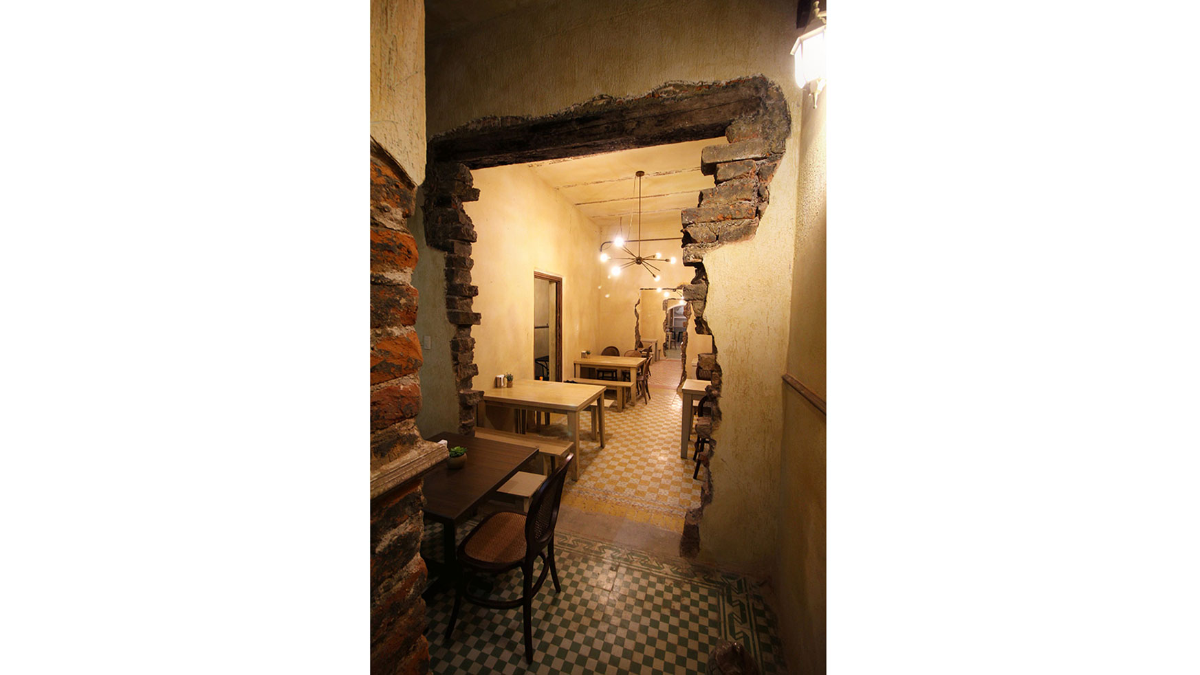 El restaurante-café Aroma y Sabor, con casi 165 m² y raíces en los años setenta, conserva la identidad local como un eco del tiempo que se niega a desaparecer. Sus muros de ladrillo antiguo, pisos coloridos, losas con sistema de dovela y remates de vanos con vigas durmientes, que te recuerdan la calidez de un origen compartido.